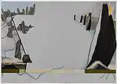 In 1977 Baer had a one-person exhibition at the Museum of Modern Art, Oxford, and during the course of it she met the British artist Bruce Robbins. The two lived and worked together from 1978 to 1984, first in Ireland and then from 1982 to 1984 in London, creating paintings, drawings, and texts. Their collaborations were shown in eight two-person exhibitions.[22] While in London, Baer wrote one of her best-known articles, "I am no longer an abstract artist," a manifesto published in Art in America in October 1983.[23] Baer chronicled "abstraction's demise," and in characterizing its meaninglessness in a vastly changed world, claimed openness, ambiguity, "metaphor, symbolism, and hierarchical relationships" as necessary building blocks of modern works. Baer announced that she and Robbins were working toward a "radical figuration" based on those constructs.