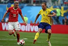 - ↑ "Schon Drmic lief in Freienbach SZ ins Offside" [Even Drmić was caught offside by Freienbach in Schwyz]. Blick (in German). 4 June 2018. Retrieved 9 June 2018.