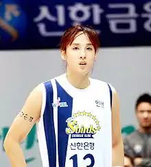 In 2007, Kim began her professional career with the Incheon Shinhan Bank S-Birds for the 2007–08 season.[1] Kim has since been a strong, consistent member of the S-Birds roster. In her early years, Kim was a part of a five-year streak of championships. During her time, she has also been awarded a place on the Best 5 team on three occasions.