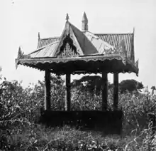 - Tomb of King Alaungpaya – His remains were interred at Shwebo.[7] In 1898, a wooden pyatthat was erected over his tomb, and a marble tombstone was laid on the tomb at a cost of 833 rupees.[11]
