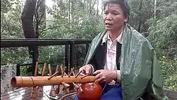 The kong ring or gung treng (Khmer: គង់រេង) is a Cambodian tube zither, in which a tube of bamboo is used as a resonator for stings that run along the outside of the tube, lengthwise.[1][2] It has the same musical purpose as the "bossed gongs" (circular gongs that have a rounded bump in the center, like a shield boss) and may substitute for them and accompany singing.[3] Although it is a traditional instrument with a long history, it has been improved on in modern times. The kong ring is represented by similar instruments in other countries of South Asia and the Pacific.
