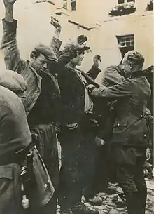 Łapanka ([waˈpanka] )(English: "roundup" or "catching") was the Polish name for a World War II practice in German-occupied Poland, whereby the German SS, Wehrmacht and Gestapo rounded up civilians on the streets of Polish cities. The civilians arrested were in most cases chosen at random from among passers-by or inhabitants of city quarters surrounded by German forces prior to the action.[1]