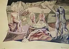 At a young age Kenney had read Salvador Dalí's autobiography and the works of poet André Breton, and had become fascinated with surrealism. The influence is plain in his dark, figurative works of the 1940s and '50s. Taking Breton's proclamation that "only the marvelous is beautiful" to heart, he painted "automatically", without conscious planning.[5] Except for a few portraits done for friends, he never tried to reproduce reality in his paintings, always searching instead for deeper meaning.