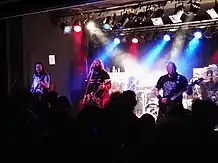 Soulfly is an American heavy metal band from Phoenix, Arizona. Formed by vocalist and rhythm guitarist Max Cavalera following his departure from Sepultura in 1997, the group originally included lead guitarist Jackson Bandeira, bassist Marcelo "Cello" Dias and drummer Roy "Rata" Mayorga.[1] Bandeira left after the recording of the band's self-titled debut album, with former Machine Head guitarist Logan Mader taking his place in April 1998 for the album's touring cycle.[2] Mader had left by the following January,[3] with Mikey Doling joining in his place.[4] Mayorga departed the group in July 1999,[5] with Joe Nunez announced as his replacement in November.[6] Nunez performed on the 2000 album Primitive, but left the following October due to concerns with his "financial arrangement with the group". Mayorga returned in his place.[7]