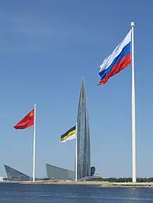 - ↑ "Полутонный флаг на 175-метровом флагштоке. Что сейчас — и что будет напротив парка 300-летия". Фонтанка (in Russian). Retrieved 2022-04-28.