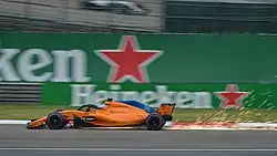 After criticising their engine supplier in the previous seasons, a switch to customer Renault engines in 2018 exposed issues with the McLaren chassis.[13] The car could manage just two top 10 qualifying times throughout the season, both by Fernando Alonso, and the team's drivers were eliminated 21 times in the first qualifying session.[14] McLaren had the second worst average qualifying ranking of any team in 2018, only ahead of Williams.[14] Reliability however was improved from the previous year, and the team greatly benefitted from their rivals' problems to score points from the early races.[15] The team finished sixth in the constructors' championship after Force India's points from the first 12 races were excluded.[16] Alonso retired from Formula One at the end of the season, while Vandoorne couldn't match his own points tally from 2017 and left the sport.[17][18]