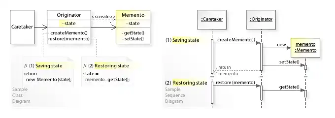 • Memento UML Class Diagram with C# and .NET code samples