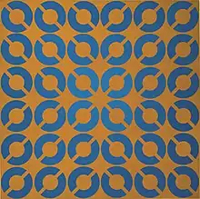 Williams' work of the 1960s and 1970s relates to that of European artists such as Bridget Riley and Victor Vasarely.[11] Op art came to prominence in the United States with the Museum of Modern Art’s exhibition The Responsive Eye in 1965, and had a large public following.[12] In New Zealand, a small number of artists worked in an Op style, notably Gordon Walters and Ray Thorburn. Williams and Walters travelled to Melbourne, Australia, together in 1975, breaking their return journey to visit Sydney to see an exhibition of recent paintings by Bridget Riley at the Coventry Gallery.[13]
