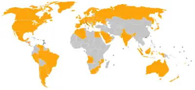 Countries (in orange) where one or more of the images were published in some form