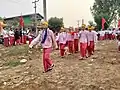 Mon National Day is marked with literature competitions, photo exhibitions, traditional boxing competitions, and traditional songs and dances performed by a popular Mon drama troupes and other cultural shows.[13][14] Traditional Mon musical instruments, food and handicrafts are also sold during festivities.[13] During the festivities, many celebrants don traditional Mon outfits, consisting of red-colored longyis and white tops.[15]