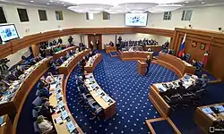 55°45′52″N 37°37′02″E / 55.764503°N 37.61722°E The Moscow City Duma (Russian: Московская городская дума, romanized: Moskovskaya gorodskaya duma) is the regional parliament (city duma) of Moscow, a federal subject and the capital city of Russia.[1] As Moscow is one of three federal cities,[lower-alpha 1] the city duma's legislation can only be overridden by the mayor and the federal government.