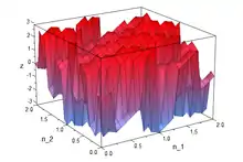 A 2-D modulation comprises a space domain that has 2 independent variables e.g. x(n1,n2) with a corresponding frequency domain that also has 2 independent variables X(ω1, ω2).