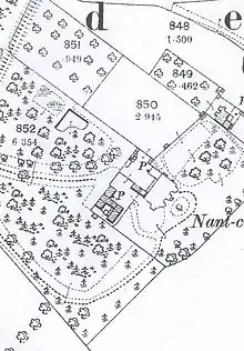 Site of Nantcribba Hall in 1902 with stable block and Parkland