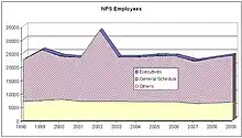 The NPS employs about 20,000 people in 428 units covering over 85 million acres (0.34 million km2) in all 50 states, the District of Columbia, and U.S. territories.[6][4][7] In 2019, the Service had more than 279,000 volunteers.[7] The agency is charged with preserving the ecological and historical integrity of the places entrusted to its management and with making them available for public use and enjoyment.
