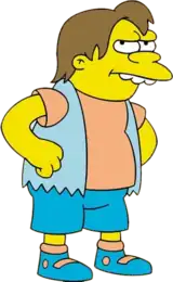 Nelson is a 12-year-old student and bully at Springfield Elementary School. He is known to have terrorized virtually every child in Springfield at one point or another. Most often, it is the school nerds and less popular students, such as Milhouse and Martin, who are the subjects of his cruelty. Nelson shows the occasional glimpse of humanity, and other characters have warmed to him because of that; Lisa dates him briefly in "Lisa's Date with Density", Marge informally adopts him in "Sleeping with the Enemy", and Bart is shown as a friend to him several times, such as in "The Haw-Hawed Couple".