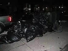 DSNY provides curbside pickup of trash and recycling multiple times per week for every residential building in the city. Trash must be placed in black bags and recycling in clear or blue bags. This leads to complaints about the sidewalk space taken up by trash, especially as large residential buildings produce 'trash bag mountains' daily.[4] Some buildings do place their garbage in special containers.