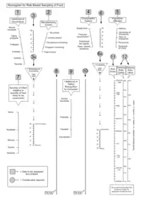 This risk assessment nomogram was developed by the UK Public Analyst Service with funding from the UK Food Standards Agency for use as a tool to guide the appropriate frequency of sampling and analysis of food for official food control purposes, intended to be used to assess all potential problems with all foods, although not yet adopted.
