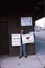 Frederick Wertz at the Netcong, NJ train station after greeting members of the New Jersey State Railroad & Transportation Museum Commission in May 1988.