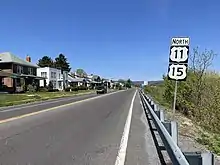 US 11 enters Pennsylvania parallel to I-81 south of Greencastle in Antrim Township, Franklin County. The two routes head to the northeast, running parallel to each other as they pass through Chambersburg, where they intersect US 30, Shippensburg, and Carlisle. Northeast of Carlisle in Middlesex Township, US 11 has interchanges with the Pennsylvania Turnpike (I-76), and then I-81 roughly one mile (1.6 km) later. The stretch of US 11 between I-76 and I-81 is known as the "Miracle Mile" since it contains plenty of traveler services including restaurants, gas stations, lodging, truck stops, and shops.[1] There is no direct interchange between the two Interstates, so travelers must use this stretch, or travel through downtown Carlisle, to get from one Interstate to the other.