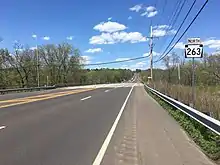 Pennsylvania Route 263 (PA 263) is a northsouth state highway located in southeast Pennsylvania. The southern terminus of the route is at PA 611 in Willow Grove, Montgomery County. The northern terminus is at the Centre Bridge–Stockton Bridge over the Delaware River in Centre Bridge, Bucks County, where the road continues into Stockton, New Jersey, as Bridge Street to an intersection with Route 29. PA 263 follows the routing of Old York Road, a historic road that connected Philadelphia to New York City, and carries the name York Road from the southern terminus to Lahaska and Upper York Road north of there. From Willow Grove to Buckingham, PA 263 runs mostly through suburban areas as a four-lane road, passing through Hatboro, Warminster, and Jamison. The route forms a concurrency with U.S. Route 202 (US 202) in Buckingham and narrows to a two-lane road, splitting with that route in Lahaska. From here, the route continues through rural areas to Centre Bridge.