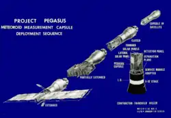 The Pegasus Project was a NASA initiative to study the frequency of micrometeoroid impacts on spacecraft by means of a constellation of three satellites launched in 1965.[1][2] All three Pegasus satellites were launched by Saturn I rockets, and remained connected with their upper stages.