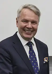 Following their best ever result in the 2019 national elections and after becoming part of the incoming governing coalition under the leadership of Prime Minister Antti Rinne, the Green League named Haavisto as the next foreign minister.[18] In this capacity, he chaired the meetings of the Foreign Affairs Council during Finland's rotating presidency of the Council of the European Union in 2019.[19]