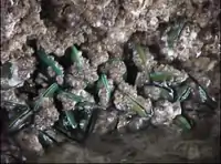 The mussel inhabits estuarine habitats and is found in densities as high as 35,000 individuals per square meter on any submerged marine object. Although vivid green in appearance, the mussels are shrouded with overgrowth and are often hard to find. The mussels live in waters that are 11–32 °C (52–90 °F) with a wide-ranging salinity of about 18-33 ppt.[3] P. viridis grows fastest at 2 metres (2 yards) below the surface, in high salinity and a high concentration of phytoplankton, although it can tolerate a range of salinity and turbid water.[5]
