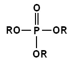General chemical structure of a monophosphate ester; here any R can be H or some organic radical.