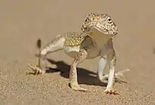 Phrynocephalus interscapularis, Lichtenstein's toadhead agama, is a species of agamid lizard found in Turkmenistan, Kazakhstan, Uzbekistan, Iran, and Afghanistan.[1]