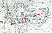 Starting in 1300, the street that would become Rathausgasse and Postgasse was known as Hormansgasse or Hormatsgasse. The Horman family, the origin of the name, lived in Bern from 1224-1326. Since 1619 the upper section (now Rathausgasse) was known as Metzgergasse (Butcher's Lane), while the lower section was first called Postgasse in 1798.[1] In 1675, in the house at Nr. 64/66, the Fischer'sche Post was first built which was the origin of the name in the following century. However, while the name was official in 1798, it wasn't until about 1870 that it became common. In the meantime, the Post moved from Postgasse in 1832.[2]