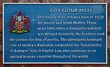 The City Flour Mills were built in 1850 by Joseph and Jonah Hadley who used the mill until 1860 when they moved their business to London. During their time, the building was the site of a landmark case in contract law referred to as Hadley v. Baxendale.[1]