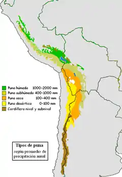 The World Wildlife fund defines three distinct puna sub-ecoregions: