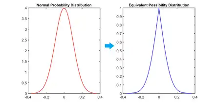 The probability distribution can be modeled from the measurement data. Then, the probability distribution can be used to model an equivalent possibility distribution using the maximally specific probability-possibility transformation.[13]