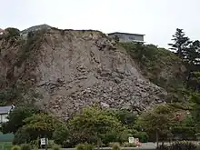 A landslide against the cliffs beside Redcliffs School, occurring from the 2011 Christchurch earthquake