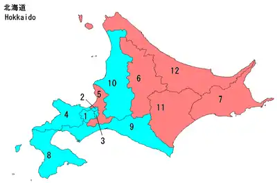 This article presents detail of the results in the 2003 Japan general election, breaking down results by block district. The 11 block districts elected 180 members by proportional representation (allocated to party lists in each block by the D'Hondt method), and 300 members were elected from single-member districts distributed among the 47 prefectures.