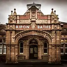 The Ripon Spa Baths are a grade II listed building in Ripon, North Yorkshire, England. It was built between 1904–05 as a spa but failed to compete with the larger facilities at nearby Harrogate. In 1936 a new pool was constructed to the rear and the facility converted to a swimming baths. The building is noted for its ornate terracotta-clad frontage and received listed building protection in 1980. Harrogate Borough Council proposed selling the building for housing development in 2008 on the grounds that it required significant structural repair. The sale was cancelled but in 2021 the council made a new proposal to sell the structure.