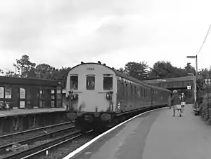 119 DMU 1959 "Particularly sumptuous seating" in a spacious layout and "vast [van] space" characterised these three-coach units, eight of which were used on North Downs Line services until just before the end of the NSE era: their luggage capacity made them ideal for Gatwick Airport traffic on that route. [33][37]