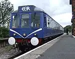 British Rail Unit DMBS 51342 and DMS 51384 Set No - Class 117 The railway has the two driving cars from what was a three-car Class 117 DMU. There were 127 of this type of vehicle and they were delivered new in 1959 to Southall depot working services between Paddington and the suburbs. They continued to be based in the London area until withdrawal in the 1990s, they arrived at the Railway in 2004. Each coach has two Leyland diesel engines underneath, which drive the wheels mechanically through a fluid flywheel. The driver's cab at each end of the unit means it can be driven from either end, making it ideal when running to Coopersale, and speeding up turn-around times. The windows in the ends mean passengers in either coach get an excellent view of the line ahead or behind and also get to watch the driver in action. The unit ran in an unusual dark blue and white 'EOR' livery until 2007, when it was taken out of service by the new owner when services were suspended. The interior has been refurbished, the unit is receiving attention to the exterior bodywork. DMBS is being restored; DMS is in service twinned with a Class 121 unpowered driving trailer.[16] DMBS is being restored; DMS operational.