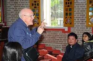Fr Liang Jian-sen, current Bishop of Jiangmen introducing the history of Immaculate Heart of Mary Cathedral to students of the five Maryknoll Fathers schools from Hong Kong. On the left of the photo is Fr Thomas A. Peyton. Photo taken on 19 March 2011.
