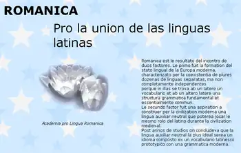 Interlingua Romanica (or simply 'Romanica') is a Romance zonal auxiliary language proposed to be used as a regional international auxiliary language for the Latin world. It is a reformed version of the constructed international auxiliary language Interlingua and was developed in 2001 by the English-speaking Canadian interlingualist Richard Sorfleet and the Spanish- and Basque-speaking Basque school teacher Josu Lavin. They presented it on the internet that same year on Latinity's Day (15 May, a celebration established by the Latin Union).