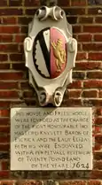 His London house was on the site of the former Priory of St Mary the Virgin, founded in 1332 by William Elsing, for canons regular, (originally a Hospital for one hundred blind men, known as "Elsing's 'Spital") situated at the north end of Gayspur Lane, which ran down to London Wall.[16] The Priory was suppressed at the dissolution of the monasteries and turned into a mansion house.[17] The house was in Philip Lane, London Wall, and adjoined the church of St Alphage; Hayward purchased it for £700 from Margery Williams, the daughter of John Williams, 1st Baron Williams of Thame, and wife of Henry Norris, 1st Baron Norris.[18] Hayward's country home was King's Place[19] in Hackney,[20] which had earlier been owned by King Henry VIII and was the scene, in July 1536, of a reconciliation between the King and his elder daughter, Mary.[21] Hayward purchased it from Henry Carey, 1st Baron Hunsdon in 1583.[17]