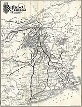 In 1901, the Rutland Railroad completed construction of a system of causeways and trestles across Lake Champlain, through the Champlain Islands of South Hero and North Hero, to connect Burlington, Vermont and Rouses Point, New York. The purpose of this construction was to give the Rutland access to Canada, independent of the tracks of the competing Central Vermont. Both companies did share the same bridge over the Richelieu River at the final approach to Rouses Point by using an unusual gauntlet track, which allowed sharing without the need for switches: only one train occupying the bridge at any one time.[4] The causeway between Burlington and South Hero was much later converted into a maintained recreational trail called The Island Line Trail.[5] The company also had a line from Rutland southeast to Bellows Falls, in southeastern Vermont on the Connecticut River just opposite North Walpole, New Hampshire (still operated by the Vermont Railway), and a line from Rutland south to North Bennington; thence to Chatham, New York. Chatham was a major junction for connections via the New York Central to New York City and the Boston & Albany Railroad service to Massachusetts, until the Rutland's 1953 abandonment of the branch between North Bennington and Chatham: the first of the railroad's divisions to lose passenger service, in 1931. [6]