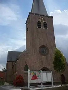 • The gothic Heilige Man Job ("Holy man Job") church dates back from 1511 and is more than 500 years old. The two aisles were built in the 19th century. In May 1940, the church was heavily damaged by troops of the retreating Belgian army, who blew up the tower to prevent the Germans from using it as a lookout post. After the war, the tower was rebuilt in contemporary style.[6][7]