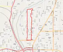 Location of the Spring-Douglas Historic District (red outline) within Elgin.