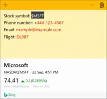 In the Windows 10 Anniversary Update, released in 2016, a new version of Sticky Notes built on the Universal Windows Platform was introduced. It can be launched as a standalone app or part of the Windows Ink workspace. The latter method causes the space behind the notes to become blurred. The new version directly accepts pen input and can recognize words and letters in handwritten text, basic text formatting, pictures. It is designed to be stick to the desktop or move around. The new Sticky Notes provides stock information when a ticker is typed or written, and it provides flight info when a flight number is typed or written.[10] It has Cortana integration and can create reminders from notes that include a date.[11][12] Unlike the Windows 7 version, this version's taskbar preview shows a stock image rather than the notes a user has created. It originally did not have a jump list, but that was added back in version 1.6.2 on February 6, 2017.