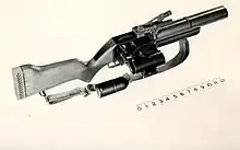The T148E1 Grenade Launcher is an American semi-automatic grenade launcher manufactured by Springfield Armory, being the first in the T148 (sometimes written "T-148") launcher family. It fires 40mm grenades from a three-round magazine in a harmonica gun type configuration.[1]