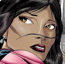 Talia al Ghul (Arabic: تاليا الغول; /ˈtɑːliə ˌæl ˈɡl/[1][2]) is a fictional character appearing in American comic books published by DC Comics, commonly in association with Batman. The character was created by writer Dennis O'Neil and artist Bob Brown, and first appeared in Detective Comics #411 (May 1971).[3] Talia is most commonly known as being the daughter of the supervillain Ra's al Ghul as well as the on-and-off lover of the superhero Batman and the mother of their son Damian Wayne (the fifth Robin) who was born during a brief marriage.[4] Over the years, she has alternately been depicted as an anti-heroine who is constantly torn between being an ally and an enemy of Batman due to her loyalty to both him and her environmentalist father, with whom she shares the same vision when it comes to saving the planet and nature, but not the means he uses to achieve that goal.