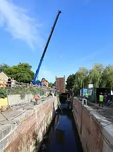 Gates being fitted to Bowbridge Lock as part of phase 1a