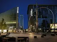 One of the most prominent new features of The Hayes since its redevelopment is 'Alliance'. This 25m high sculpture by Jean Bernard Métais is a large stainless steel ring and pointed column.