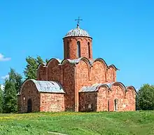 The Transfiguration Church in Kovalyovo (Russian: Церковь Спаса на Ковалёве, Tserkov Spasa na Kovalyove) in Novgorodsky District, Novgorod Oblast, Russia, was built around 1345. The church was notable for the frescoes created in the 14th century. The church was destroyed to the ground during World War II and restored in 1970. Fragments of the frescoes have since been reconstructed. The church is located 4 kilometres (2.5 mi) east of Veliky Novgorod, on the right bank of the Maly Volkhovets River. The Transfiguration Church in Kovalyovo was designated an architectural monument of federal significance (#5310100000).[1]